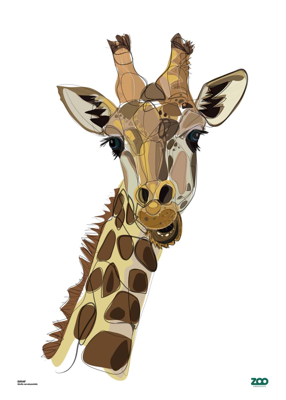 Plakat med motiv af giraf tegnet til Zoologisk Have København.
